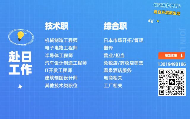 嚴(yán)海赴日(workinjapan.cn)是專業(yè)的赴日工作服務(wù)平臺(tái),是大連嚴(yán)海人力資源有限公司旗下品牌。主要提供日本就職(工作簽)/日本留學(xué)(半工半讀),等最新工作信息和資訊,為想赴日工作的小伙伴們提供專業(yè)的、一對(duì)一的咨詢,為您職業(yè)生涯規(guī)劃、永居辦理、在日期間換職、轉(zhuǎn)換簽證等方面提供支援。