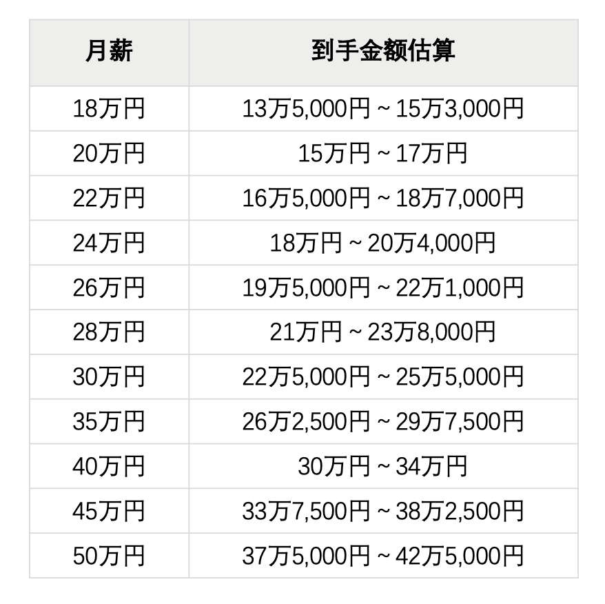 在日本獲得收入時,需要交納健康保險、年金和所得稅。員工固定工資的稅費一般比較好估算,可以參考下表: