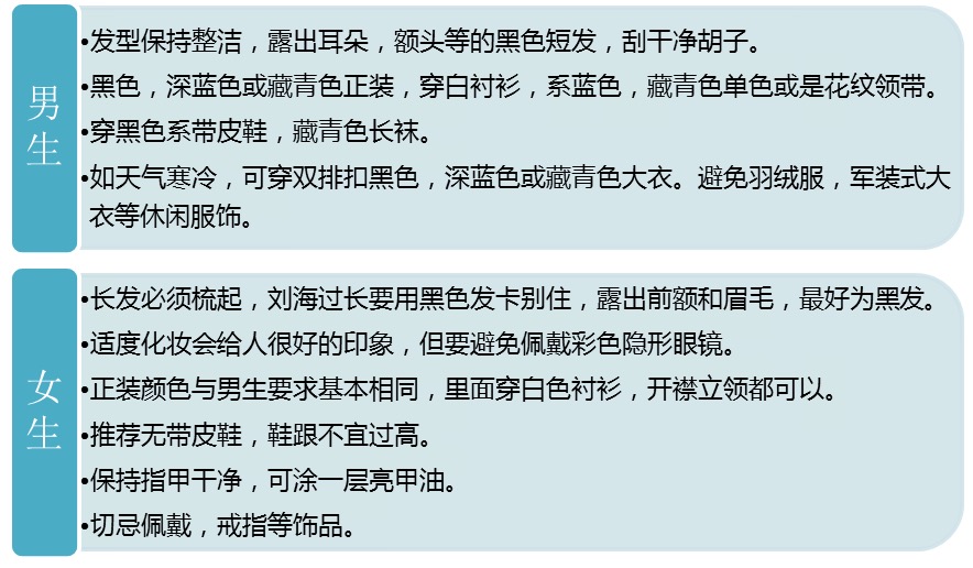 面試攜帶物品:紙筆,日程手賬,簡歷和ES,手機,手表,折疊傘,現金,絲襪(僅女生)。