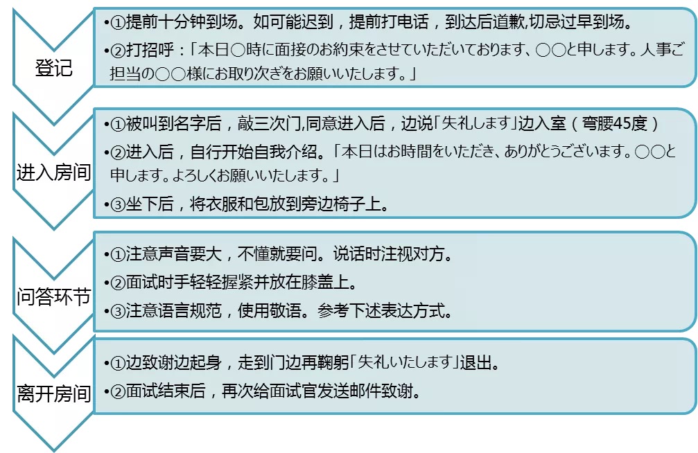 面試是人與人之間的直接交流,相比于筆試肯定會緊張很多,建議依照上述方法多準備,也可以求助周圍日本人或是學校老師,幫助練習發音,文法等,減少不必要的錯誤。建議通過大學的就業指導中心,多進行幾次模擬面試,熟悉面試流程,緩解緊張感。總之,只有做到充分準備,沉著應答,才能在眾多面試者中脫穎而出。