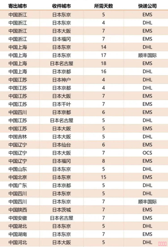 主要的快遞公司有:日本郵政、EMS、DHL、順豐國際