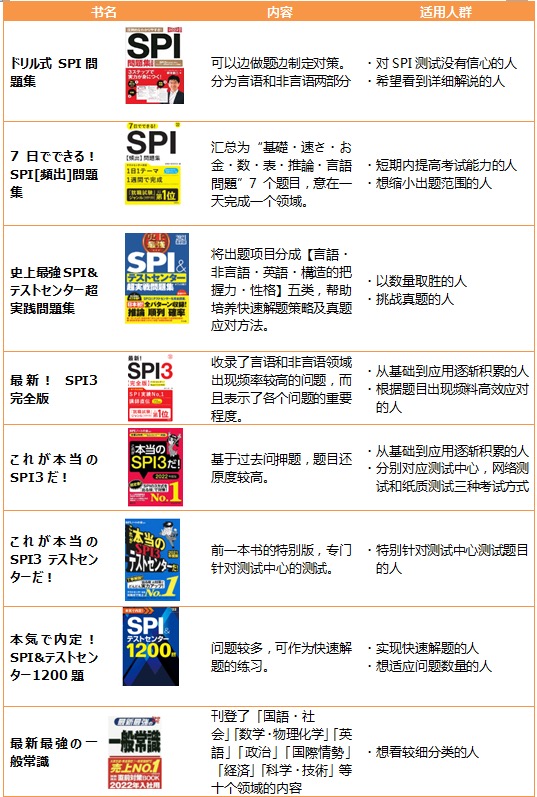 ?企業選用的考試方式每年基本都相同,作為面試者,有必要針對企業的考試內容等進行準備。有些網站會刊載企業考試信息,具體信息可以參考關鍵字【Webテストの種類別導入企業まとめ】及【SPI採用企業一覧から対策本まで全てを解説】進行搜索。