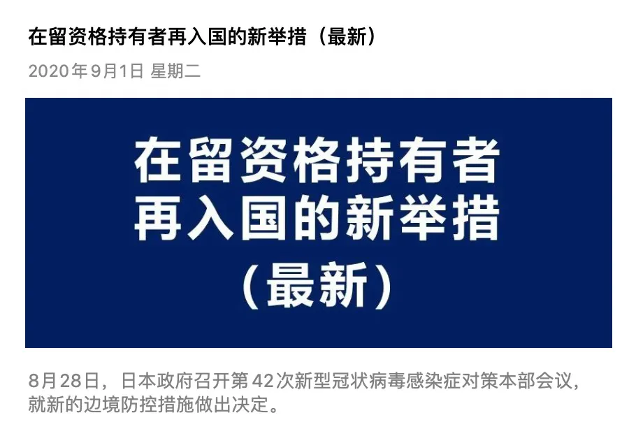 (注)在9月1日(含1日)后離開日本者,必須在出發(fā)前向出入國在留管理庁辦理相關(guān)手續(xù)方可再次入境日本。日本使領(lǐng)館無法受理申請。