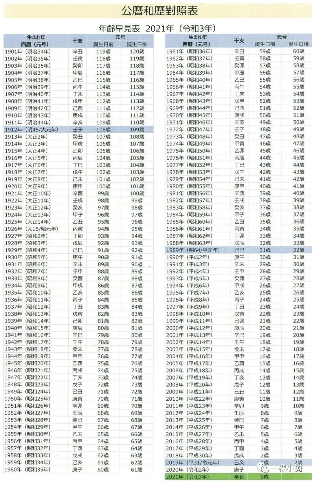 日本年號對照表