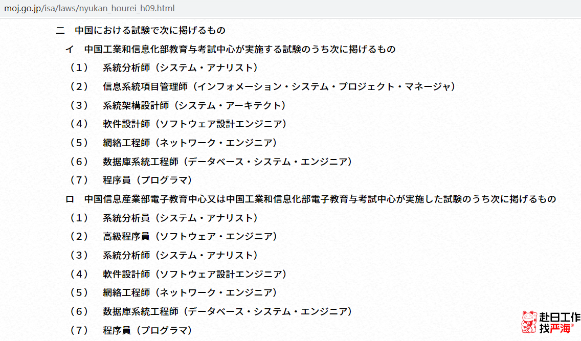如果學(xué)歷不夠,但如果有下面的IT資格證書也有機(jī)會申請日本的工作簽證(技術(shù)?人文知識?國際業(yè)務(wù)),