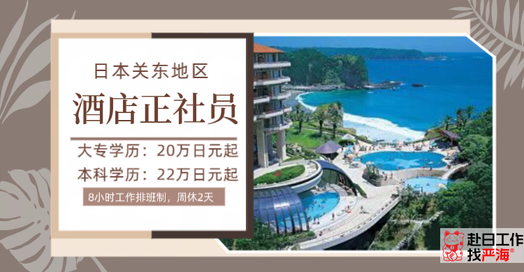 工作內容:負責酒店前臺服務翻譯、辦理入住和退房手續、迎送客戶以及餐廳服務等相關工作。提供完善的研修制度,有晉升空間,有機會挑戰本部門管理任務。工作地點:神奈川、靜岡、櫪木、長野、山梨(與企業方協商可調整)簽證類型:日本技術、人文知識、國際業務簽證(可長期續簽,可申請永久居留)【薪資待遇】1、工資:正式員工月薪22萬日元以上(大學學歷)、月薪20萬日元以上(大專學歷),試用期3個月薪資不變。2、加班